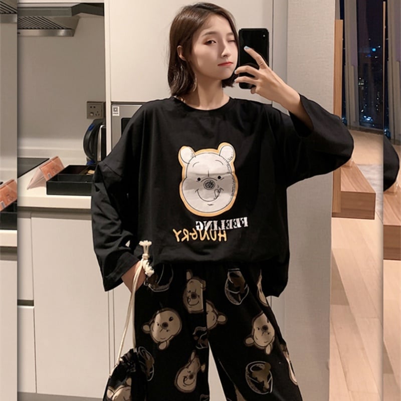 Ensemble pyjama noir avec Winnie l’ourson pour femme