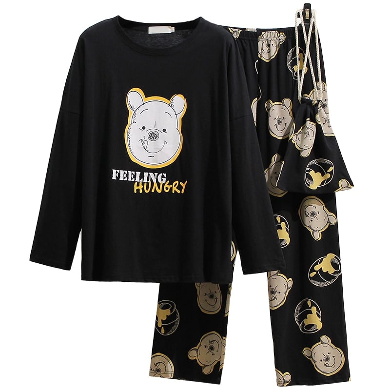 Nous vous présentons ici un magnifique pyjama noir orné de la frimousse de Winnie l’ourson en motif blanc. Ce pyjama est tellement élégant que vous pourrez également le porter pour vous détendre à la maison.
