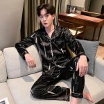 Joli Pyjama noir satiné pour homme