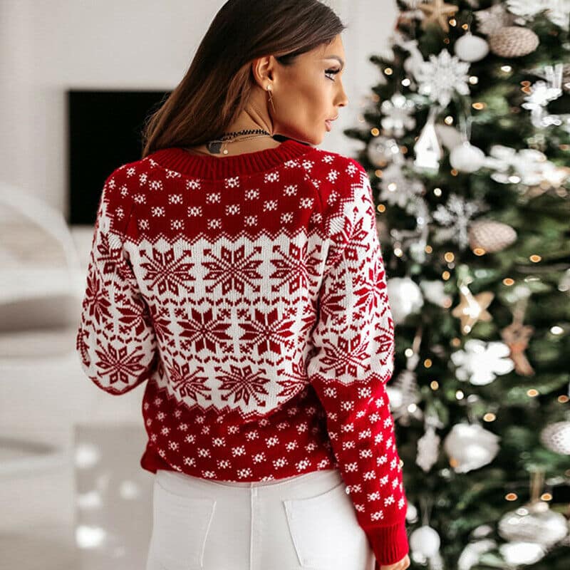 Ajoutez une touche de magie à vos vêtements de Noël avec ce pull ultra doux à grands flocons de neige. Les imprimés vifs et les teintes festives vous feront briller tout en vous offrant confort et douceur.