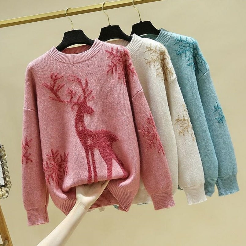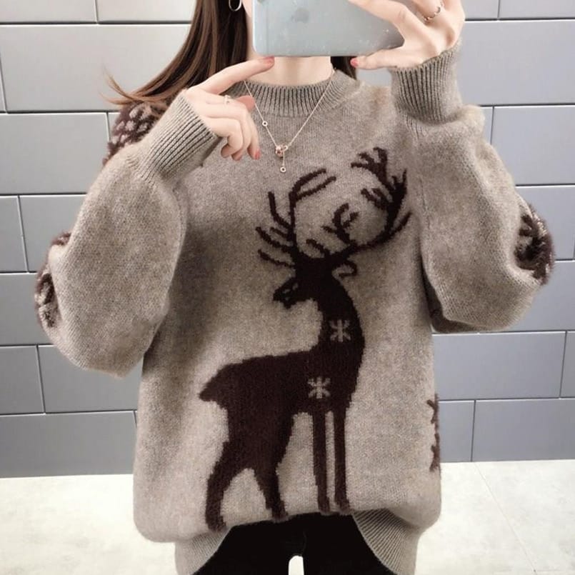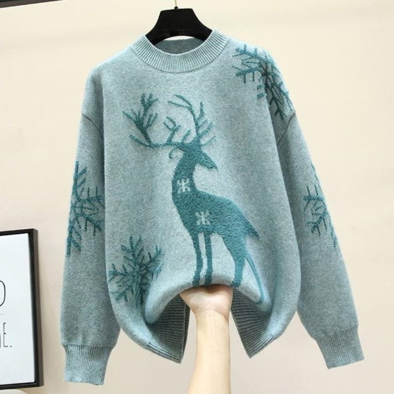 Restez chic et au chaud durant l’hiver grâce à ce pull en faux cachemire pour femmes. Ultra-doux et agrémenté d’un motif de renne raffiné, il est idéal pour une tenue d’hiver élégante. Optez pour un pull de Noël et célébrez cette saison spéciale avec style.