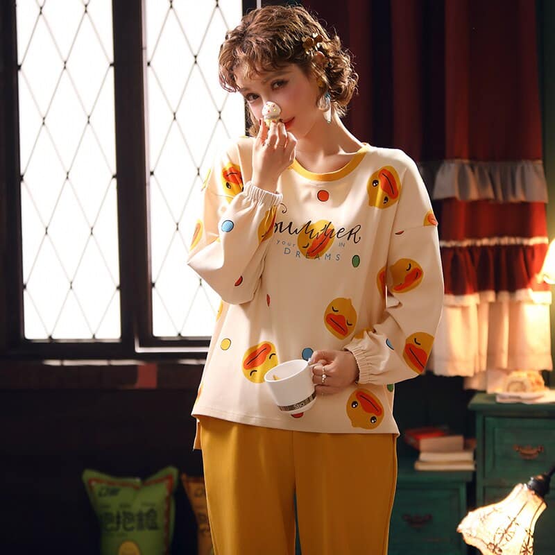 Pyjama automne manches longues avec imprimé canard pour femmes