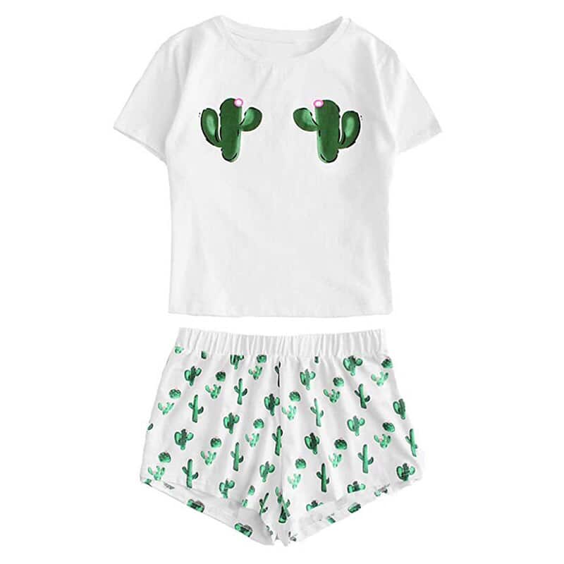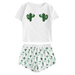 Après une journée de labeur, offrez-vous une nuit réparatrice grâce au pyjama blanc à deux pièces avec motif cactus en nylon.
