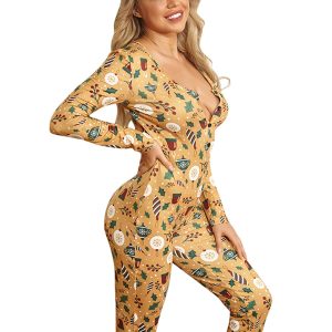 Pyjama combinaison sexy dorée manches longues pour femmes