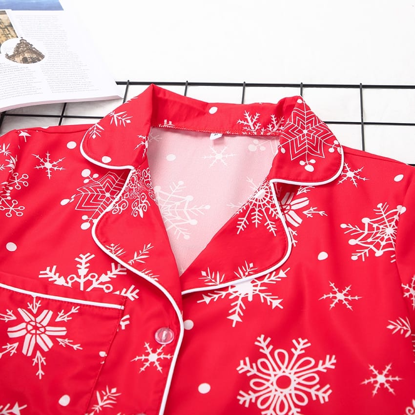 Les festivités approchent rapidement ! Enfilez ce magnifique pyjama pour femme, orné de flocons de neige et de superbes teintes de Noël, pour rester bien au chaud. Il est parfait pour se sentir confortablement enveloppé lors des nuits hivernales en attente de Noël. Douceur et confort garantis.