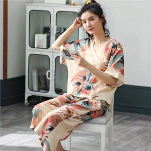 Pyjama d’été à manche chauve-souris avec imprimé floral