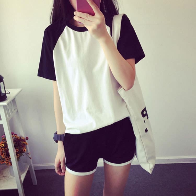 Pyjama d’été avec t-shirt blanc et short bleu marine pour femme