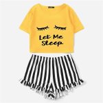 Quelle joie de revêtir un pyjama deux pièces constitué d’un t-shirt et d’un short rayé noir et blanc pour les nuits estivales. Vous vous sentirez léger et glisserez doucement dans un sommeil paisible.