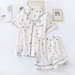 Pyjama d’été manches courtes avec imprimé lapins et fleurs pour femmes