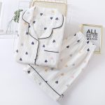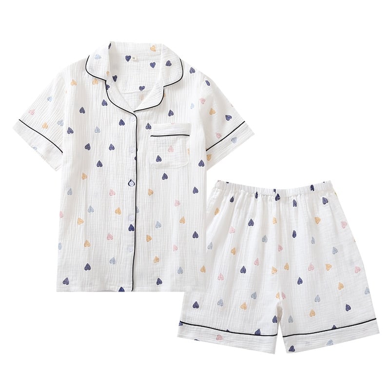 Pyjama d’été en gaze de coton à manches courtes avec imprimé cœurs pour femmes