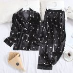 Vous êtes à la recherche de la tenue parfaite pour vos nuits ? Ce désirable pyjama noir en deux pièces avec manches longues et col rabattu pour dames est fait pour vous. Confectionné en soie, il offre un confort doux et inégalé.