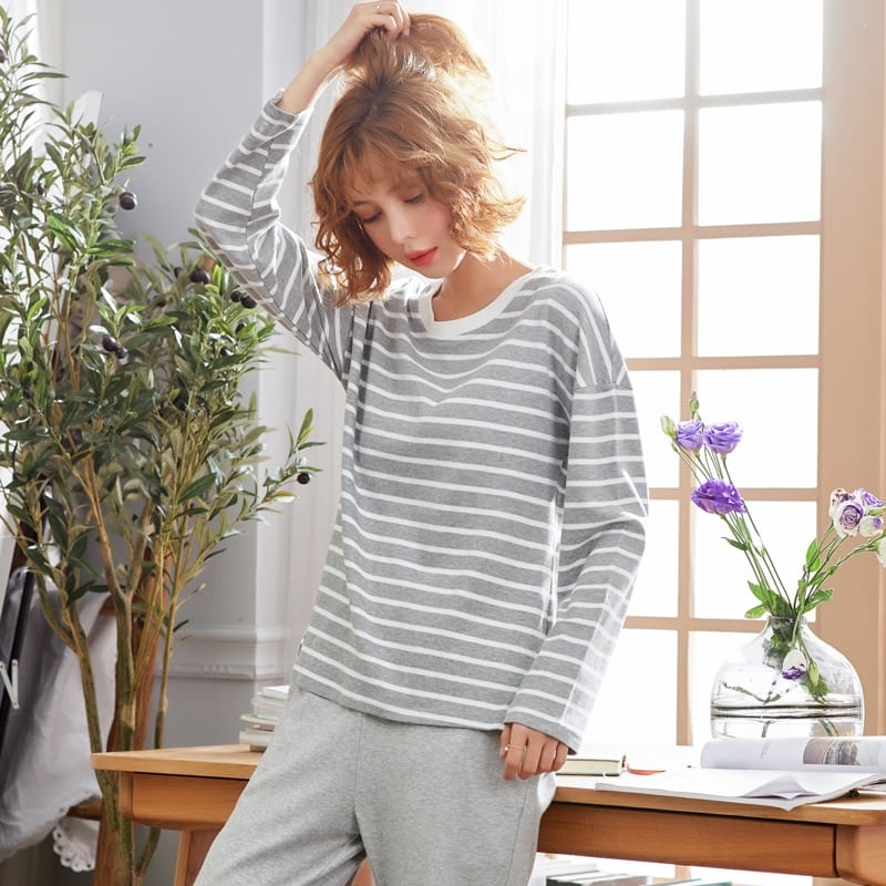 Un confort absolu pour vos nuits est primordial. Ce superbe pyjama, composé d’un pull-over gris à rayures blanches et d’un pantalon gris, est idéal pour vous offrir cette sensation. Vous apprécierez la douceur et la légèreté de cet ensemble soyeux.