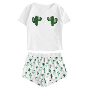 Une femme préfère souvent porter des vêtements légers et séduisants pendant la nuit. Réalisez vos envies avec ce pyjama deux pièces à motif cactus adorables. La douceur est également au rendez-vous grâce au tissu en nylon du pyjama.
