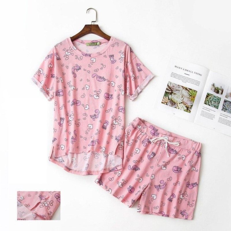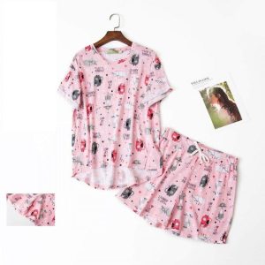 Choisissez cet ensemble pyjama femme manches courtes en deux pièces pour apporter harmonie et stabilité à votre corps. Porter ce magnifique pyjama améliorera certainement la qualité de votre sommeil et augmentera votre vitalité au réveil. Son design avec des motifs de chat apportera une touche de joie à votre tenue.