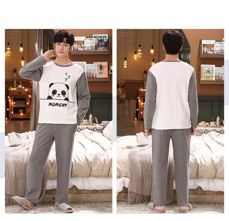 Découvrez notre adorable pyjama panda souriant spécialement conçu pour vous. Fabriqué entièrement en coton, ce pyjama est doté d’un pantalon avec élastique à la taille. Composé de deux pièces et agrémenté d’un col rond, il constitue également une excellente idée de cadeau pour les fêtes prochaines.