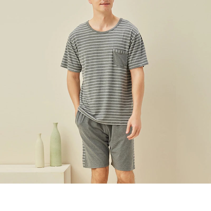Les motifs à rayures sont actuellement très en vogue. Grâce à ce pyjama deux pièces homme rayé en tricot, vous pouvez conserver une allure élégante même pendant votre sommeil. Proposé en divers coloris, ce vêtement d’été au design sobre et chic vous garantit un charme indéniable.