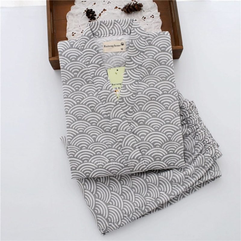 Ce pyjama pour homme, inspiré du kimono traditionnel japonais, vous offre un réveil quotidien au pays du soleil levant ! Que vous désiriez vous transformer en samouraï ou simplement vous promener en sandales dans les rues d’Osaka, il est parfait pour chaque occasion.