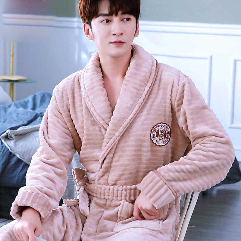 La teinte champagne de ce kimono pyjama en flanelle pour homme incarne le chic et la distinction. Avec cette couleur dorée, vous serez éclatant en revêtant ce kimono pyjama.