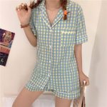 Pyjama manches courtes à motif carreaux bleu jaune pour femmes