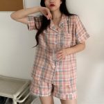 Pyjama manches courtes à motif carreaux pour femmes