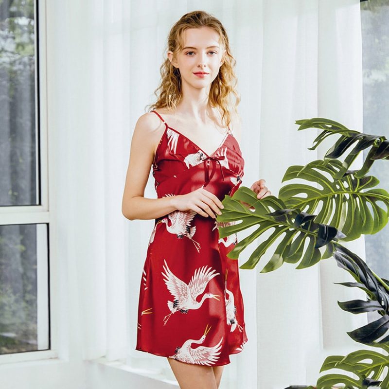 Pyjama nuisette rouge en satin pour femmes