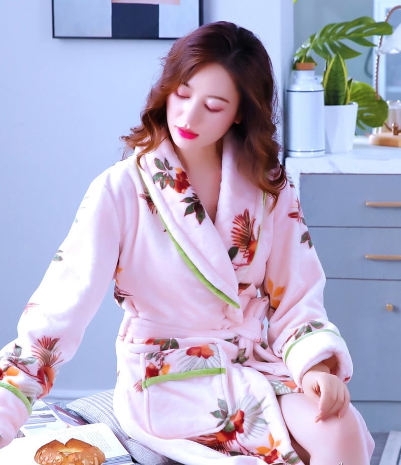 Pyjama peignoir en molleton avec imprimé floral pour femmes