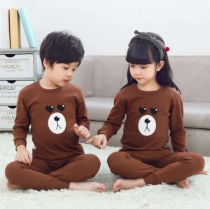 Pyjama printemps marron à motif ours pour enfants