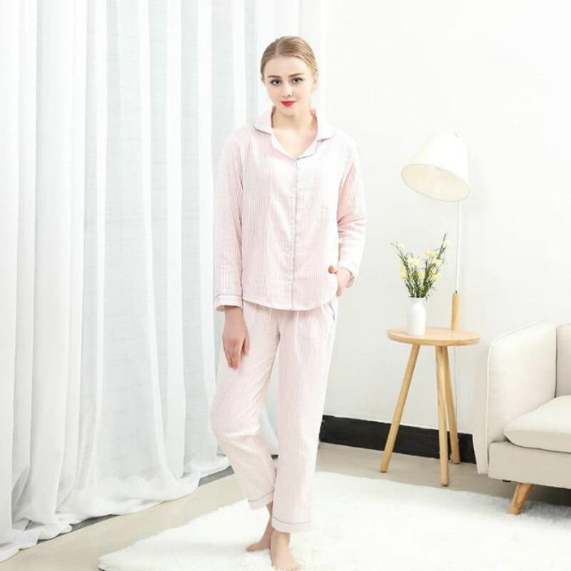 Laissez-vous séduire par ce sublime pyjama à l’allure élégante et épurée ! Sa délicate rayure, ses couleurs harmonieuses ainsi que son tissu en coton doux lui confèrent une allure élégante et confortable, alliant chic et cocooning. Parfait pour les saisons intermédiaires, il offre une bonne couverture tout en restant léger et extrêmement agréable à porter !