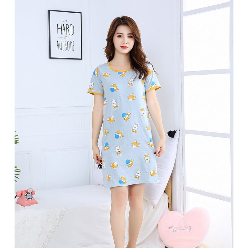 Pyjama robe de nuit gris avec imprimé chien shiba