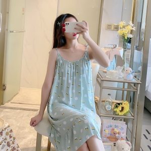 Pyjama robe de nuit bleu ciel sans manche en coton