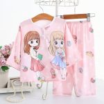 Pyjama rose en coton deux pièces à motif petites filles
