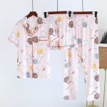 Pyjama rose trois pièces avec imprimé fils à tricoter pour femme