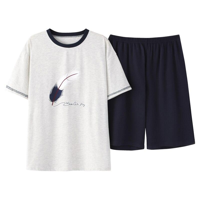 Pyjama t-shirt et short avec inscription Always smiling pour hommes