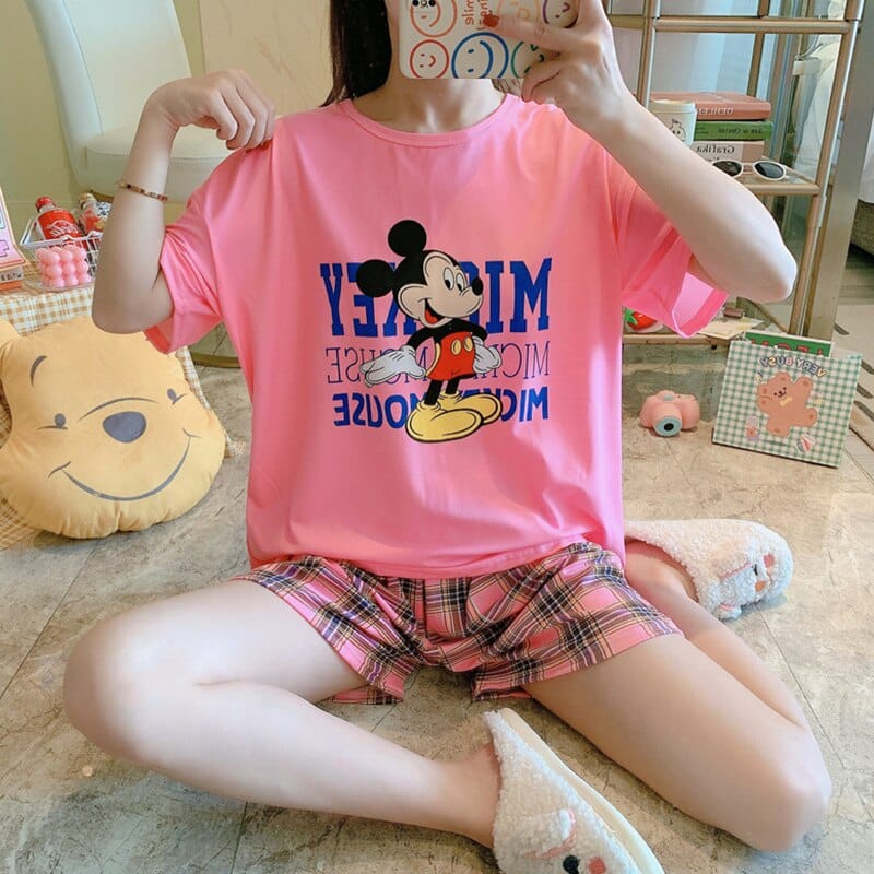 Profitez d’un sommeil amélioré grâce à un pyjama de premier choix. Cet ensemble de pyjama t-shirt et short couleur rose est la solution idéale. Conçu en polyester, ce vêtement de nuit orné de motifs de Mickey vous offrira une sensation douillette.