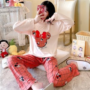 Pyjama en coton deux pièces manches longues motif Minnie Mouse